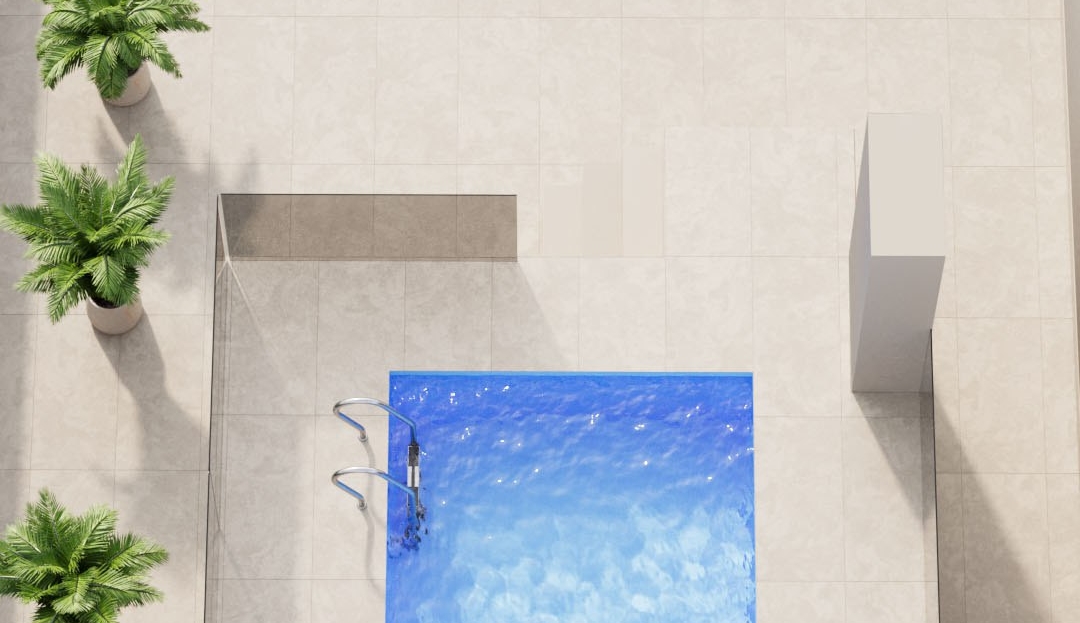 Felles solterrasse og svømmebasseng