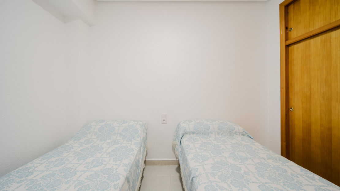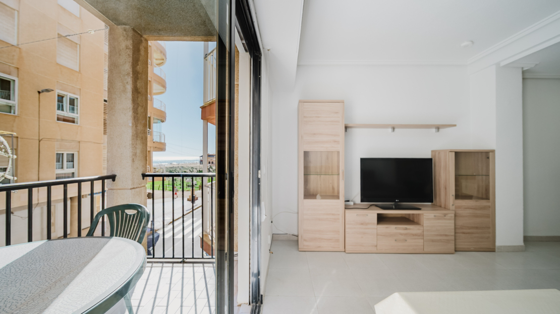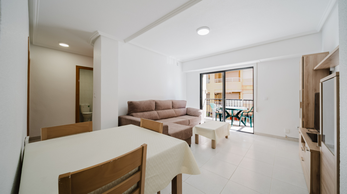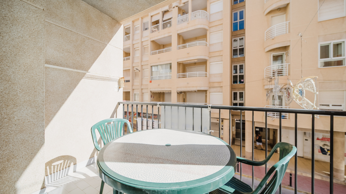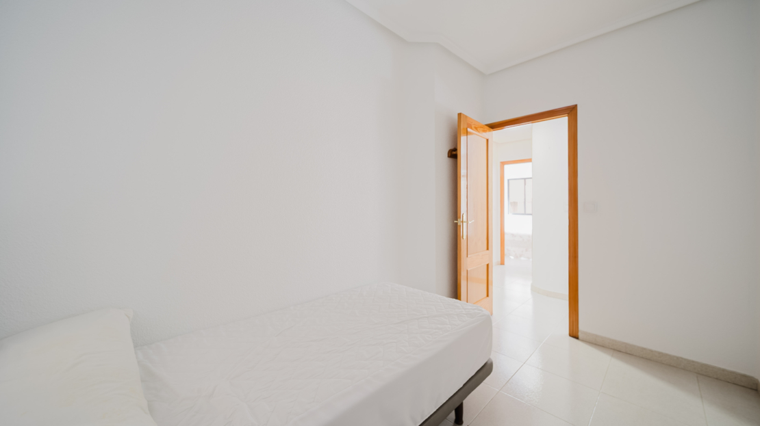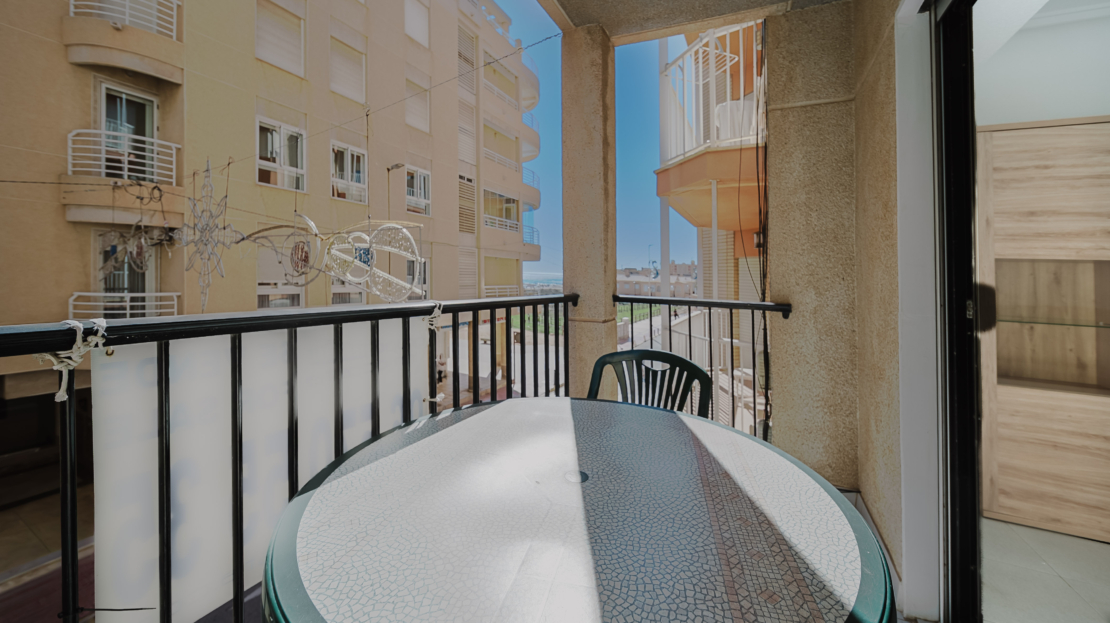 Leilighet i meget god stand, kun 30 meter fra La Mata-stranden og nær alle nødvendige tjenester. Boligen har 90 m² og består av 3 soverom, 2 komplette bad, separat kjøkken og stue med utgang til en privat terrasse på 6 m² med delvis havutsikt. Den har også en innvendig patio på 10 m².