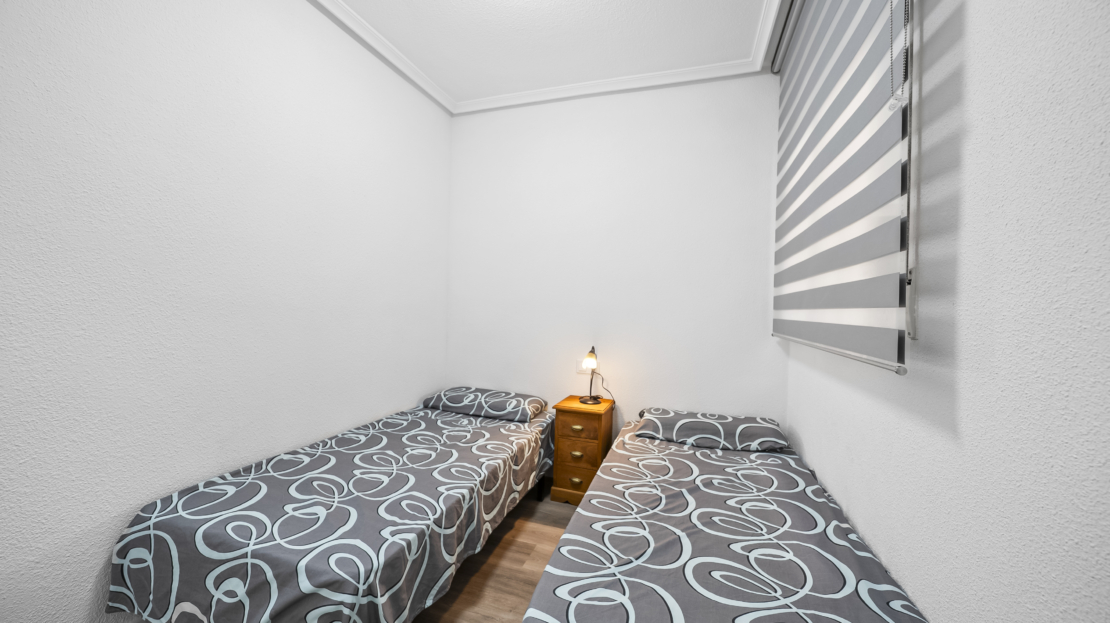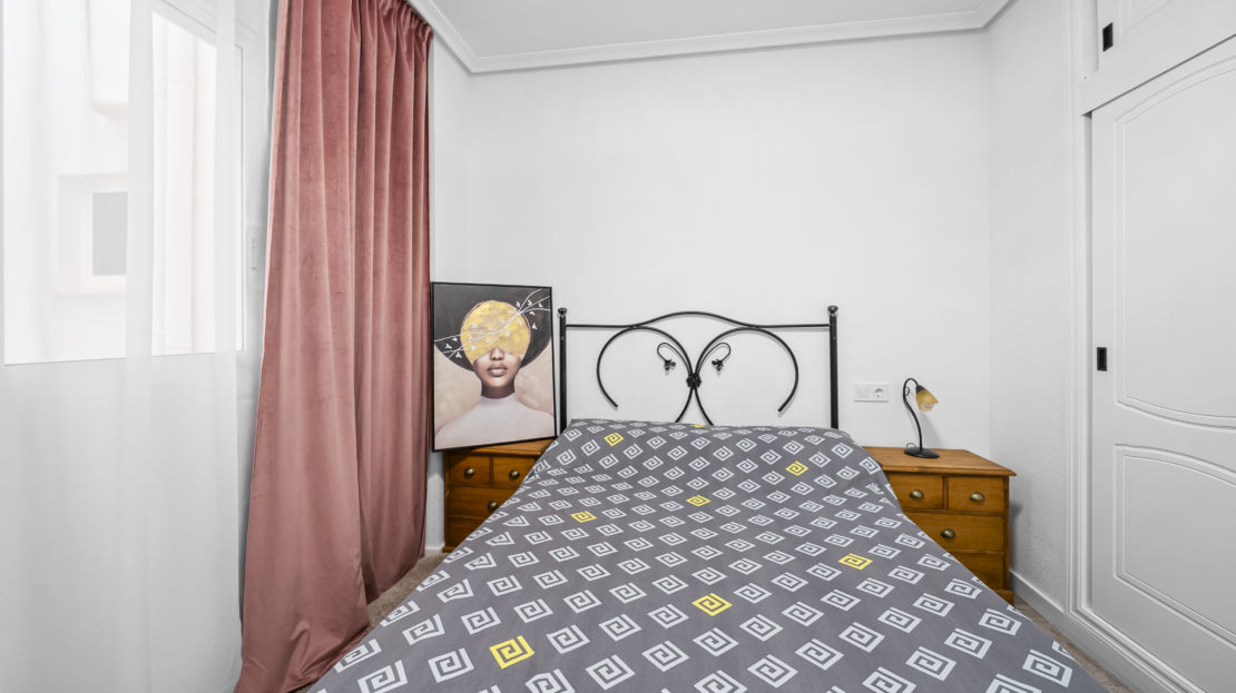 Fullstendig renovert i 2025, ligger denne leiligheten i første etasje i en sentralt beliggende bygning, kun 300 meter fra Playa del Cura. Den har 2 soverom, 1 bad, og selges møblert med hvitevarer inkludert. Østvendt.