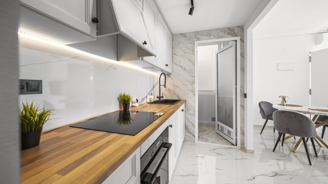 Renoveret leilighet med solrik terrasse og havutsikt i Zeniamar.