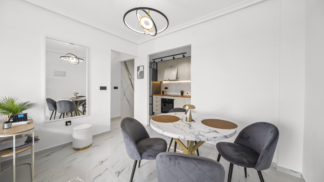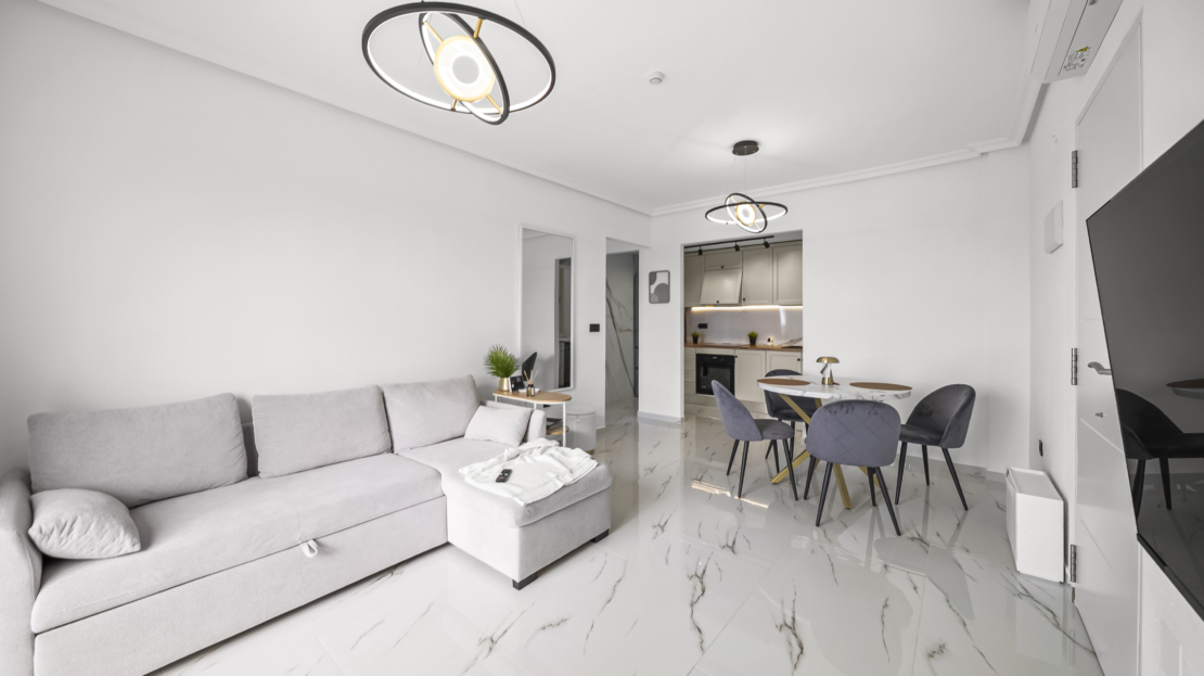 Fullstendig renovert i 2025, beliggende i første etasje uten heis i boligkomplekset Zeniamar, Playa Flamenca. Leiligheten har 1 soverom, 1 bad, åpen kjøkkenløsning og terrasse vendt mot sørøst med havutsikt. Selges møblert, med bod og tilgang til fellesbasseng.