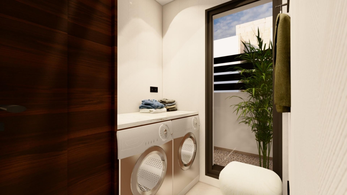 Cada villa está cuidadosamente diseñada en una sola planta, lo que ofrece una distribución práctica y cómoda, perfecta tanto para las vacaciones como para vivir todo el año. Las viviendas cuentan con 3 dormitorios y 2 baños, incluido un dormitorio principal con baño en suite y un amplio vestidor. Un lavadero independiente y una plaza de aparcamiento privada en la parcela añaden una comodidad adicional.